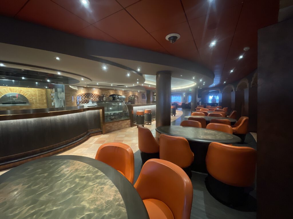 La Locanda an Bord der MSC Preziosa ist ein offenes italienisches Restaurant, welche aber auch als Bar genutzt wird. Es gibt Pasta und frische Pizza, welche hier aber bezahlt werden muss. Die Weinkarte umfasst eine Vielzahl exzellenter italienischer Weine, die perfekt zu den Gerichten passen. Die Einrichtung von La Locanda ist rustikal und gemütlich, mit warmen Farben, die eine einladende und entspannte Atmosphäre schaffen. Hier können Gäste in stilvollem Ambiente schlemmen und die kulinarische Vielfalt Italiens genießen, während sie sich in einer authentischen italienischen Gaststätte fühlen.